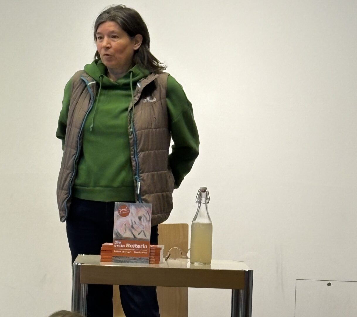 Endlich……, das Kinder- und Jugendbuch, an demClaudia Götzlange mit Worten feilte, ist fertig! Es trägt den Titel „Die erste Reiterin“ und erzählt drei Geschichten mit historischem Hintergrund. Wie könnte es anders sein, als dass die pferdebegeisterte Autorin von einem Mädchen erzählt, das sich sehnlichst ein Pferd wünscht!Die Schülerinnen der fünften Jahrgangsstufe waren begeistert, sie durften nach einer Lesung nach Herzenslust alles fragen, was ihnen auf der Zunge brannte. Seit wann schreiben Sie? Wie denkt man sich solche Geschichten aus? Warum schreibt man Bücher und wie lange dauert es, bis einem etwas einfällt?Claudia Götz erklärte den Mädchen, wie man sich besser auf etwas konzentrieren kann, seine Gedanken sortiert und so auch während Schulaufgaben den Fokus auf die Bearbeitung legen kann. Sie beantwortete alle Fragen ausführlich und erweckte dann mit Schreibübungen wie der „Wörterwolke“ oder dem „Zimmerrundgang“ in den Schülerinnen Ideen, die man nicht nur als Autorin braucht, sondern auch ganz wunderbar bei Schul- oder Hausaufgaben anwenden kann.Gerne signierte Frau Götz im Anschluss noch einige Bücher. Für die Schülerinnen war diese Lesung eine bereichernde Veranstaltung auf allen Ebenen.